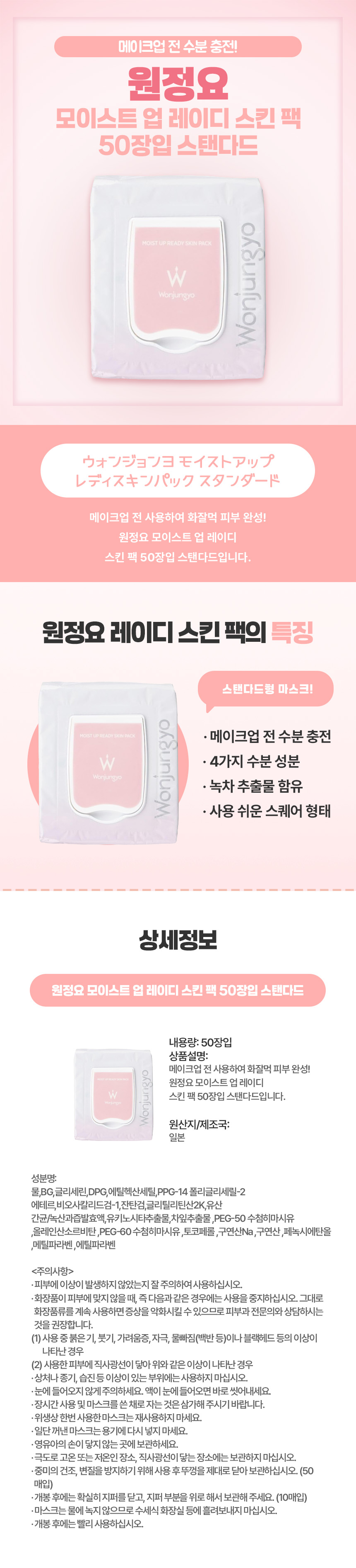 원정요 모이스트 업 레이디 스킨 팩 50장입 스탠다드