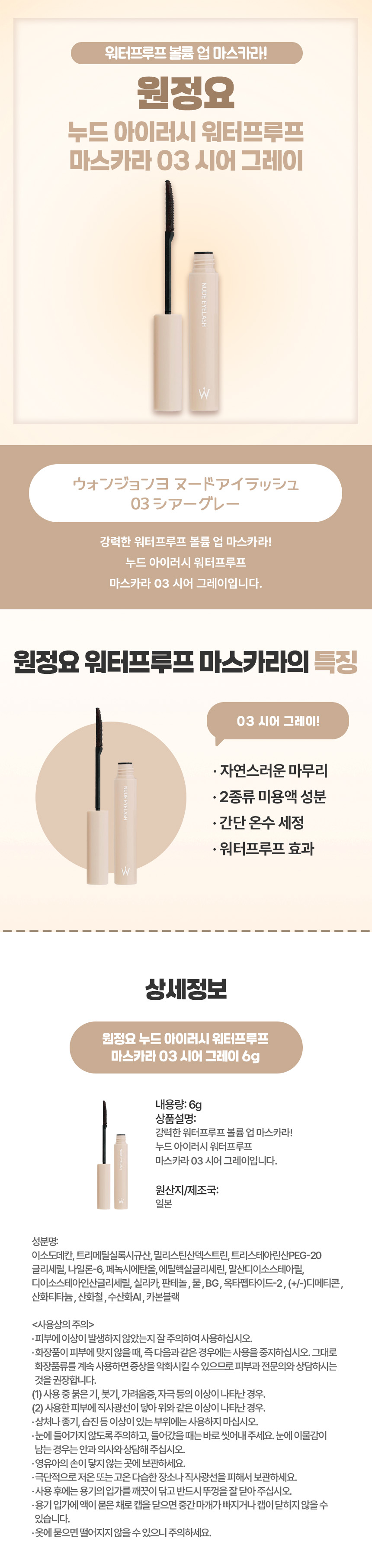 원정요 누드 아이러시 워터프루프 마스카라 03 시어 그레이 6g
