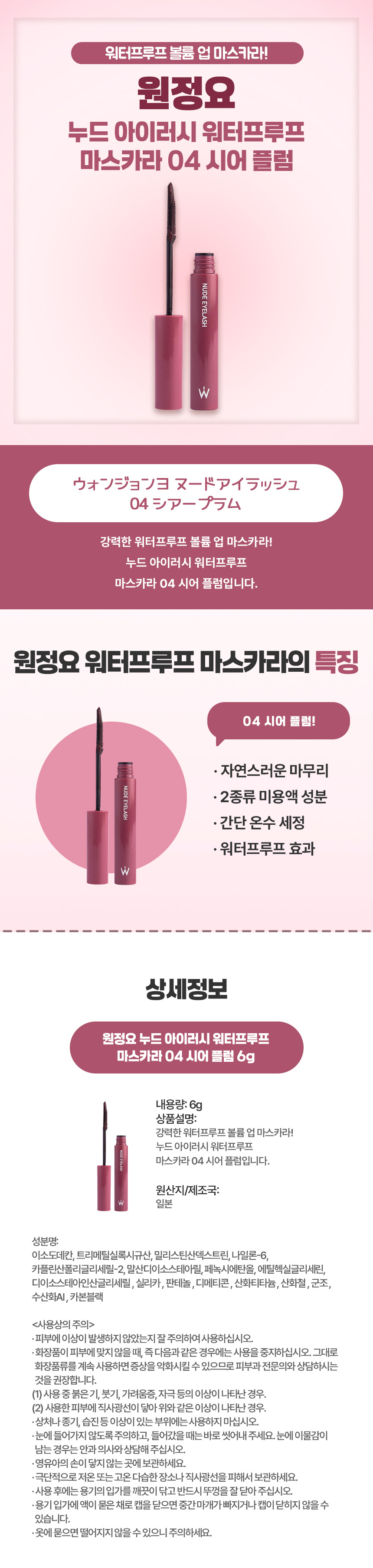 원정요 누드 아이러시 워터프루프 마스카라 04 시어 플럼 6g