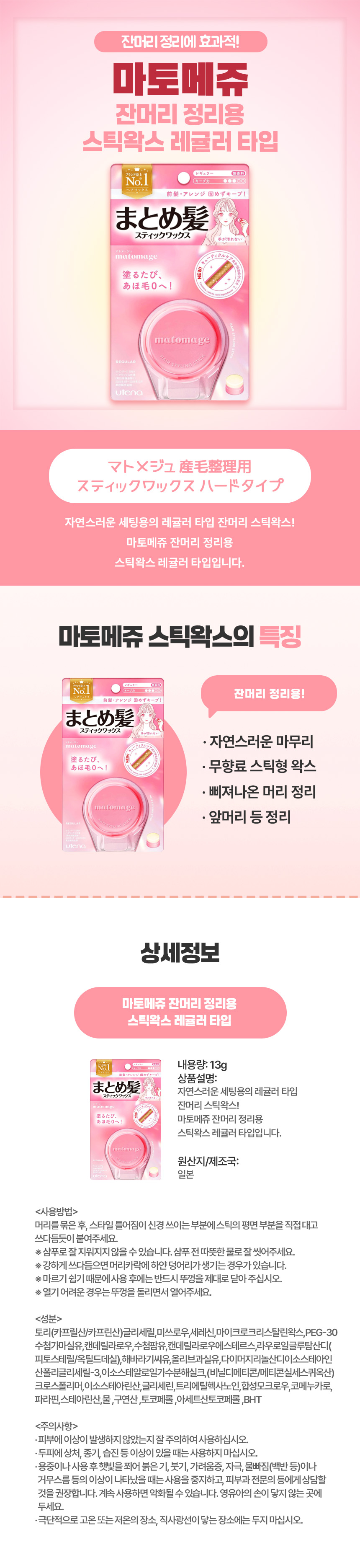 자연스러운 고정 일본 직구 마토메쥬 잔머리 스틱왁스 레귤러 타입