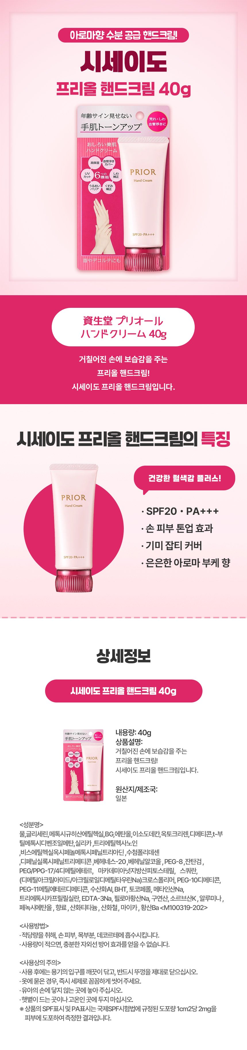 거칠어진 손 보습 일본 직구 시세이도 프리올 핸드크림