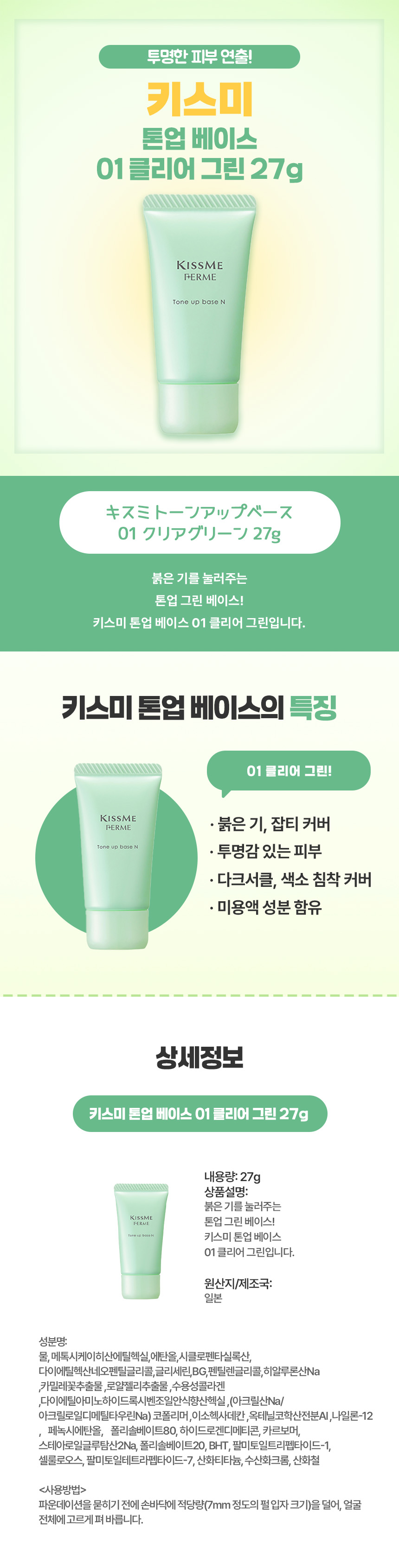 Kiss Me 키스미 톤업 베이스 01 클리어 그린 27g