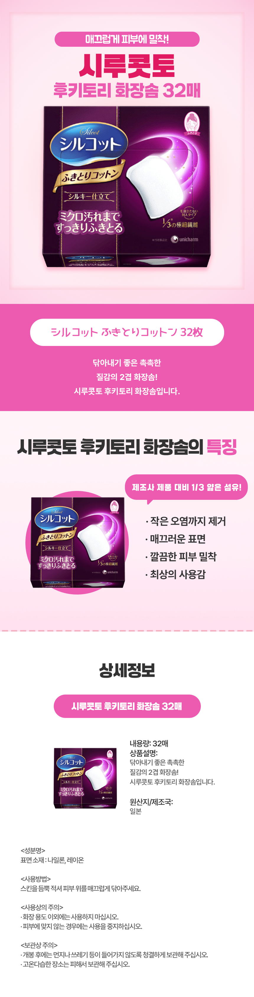 부드럽게 닦일 땐, 일본 직구 시루콧토 후키토리 화장솜