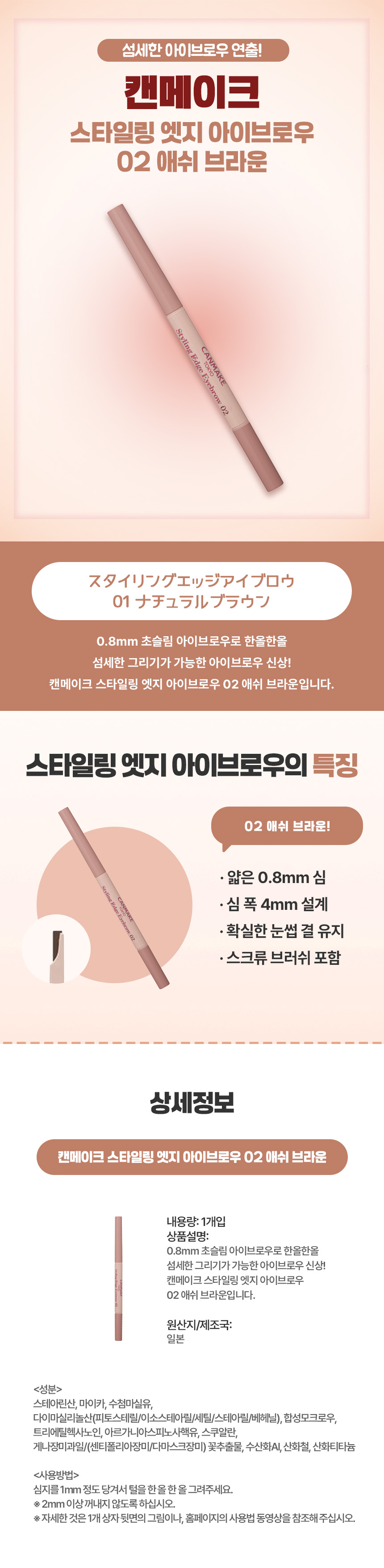 섬세한 아이브로우가 필요할 땐, 일본 직구 캔메이크 스타일링 엣지 아이브로우 02 애쉬 브라운
