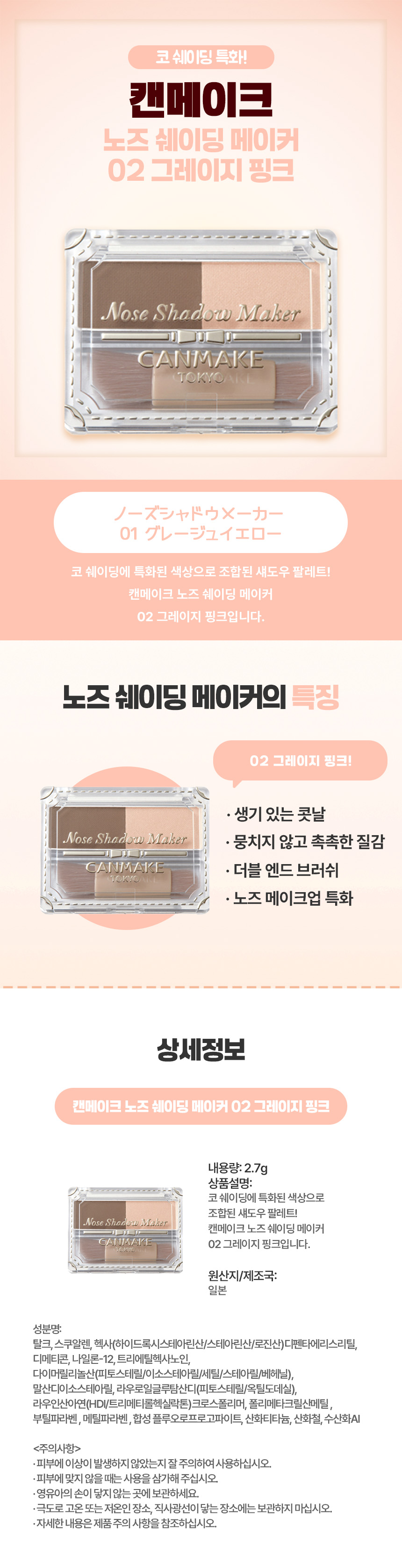 자연스러운 쉐딩이 필요할 땐, 캔메이크 노즈 쉐이딩 메이커 02 그레이지 핑크