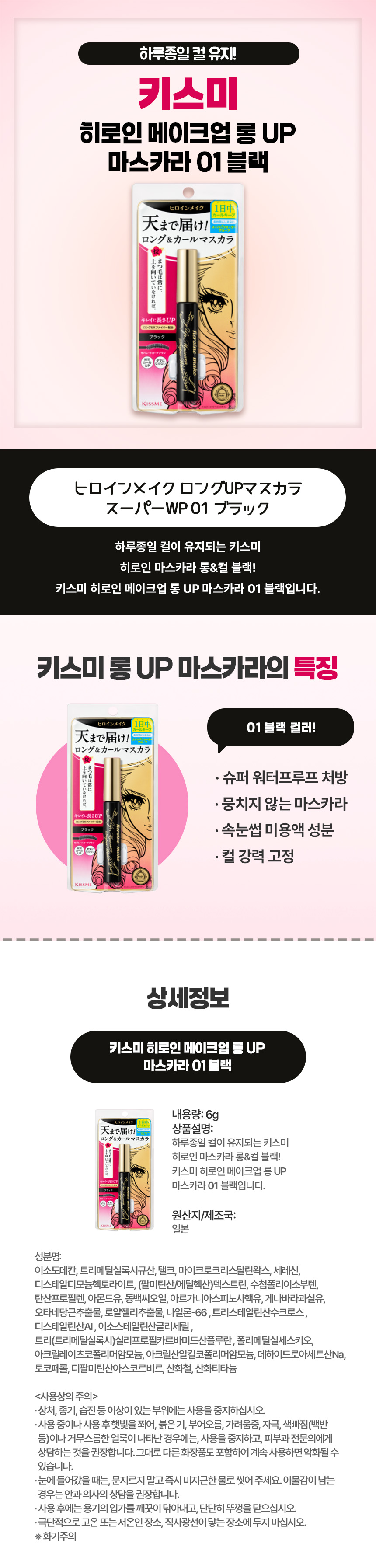 길고 선명한 속눈썹엔, 일본 직구 키스미 히로인 메이크업 롱 UP 마스카라 01 블랙