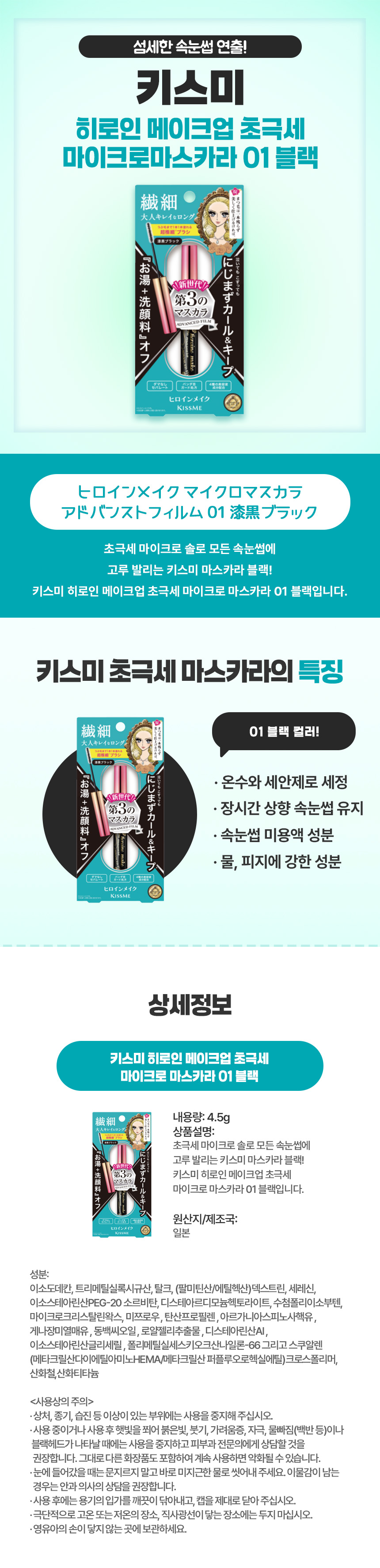 섬세한 디테일엔, 일본 직구 키스미 히로인 메이크업 초극세 마이크로 마스카라 01 블랙
