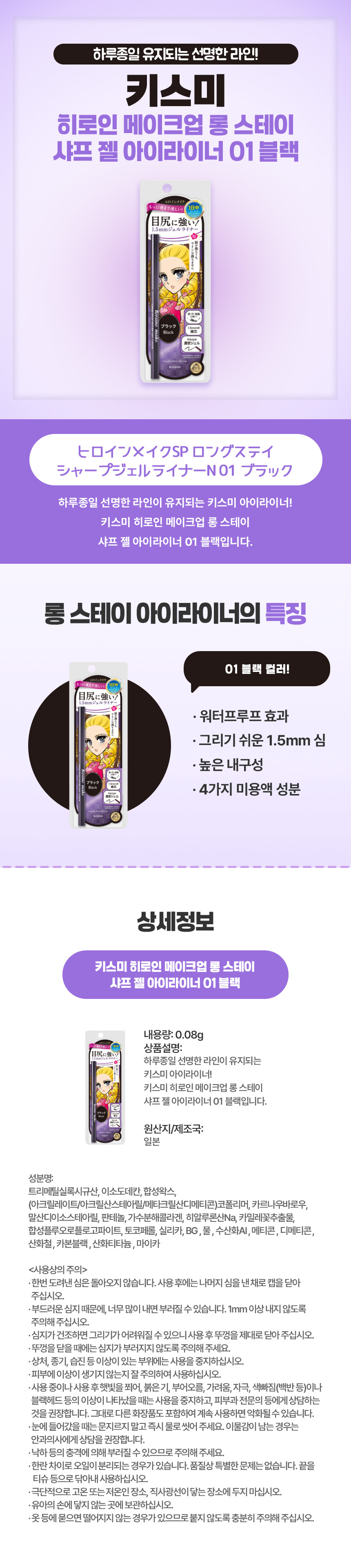 번짐 없는 깊은 눈매엔, 일본 직구 키스미 히로인 메이크업 롱 스테이 샤프 젤 아이라이너 01 블랙