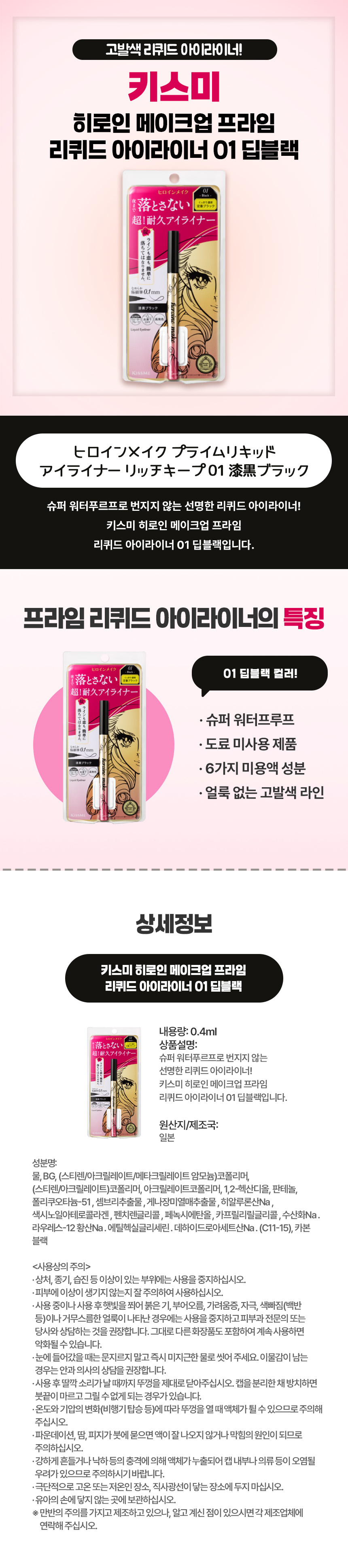 강렬하고 선명한 라인엔, 일본 직구 키스미 히로인 메이크업 프라임 리퀴드 아이라이너 01 딥블랙