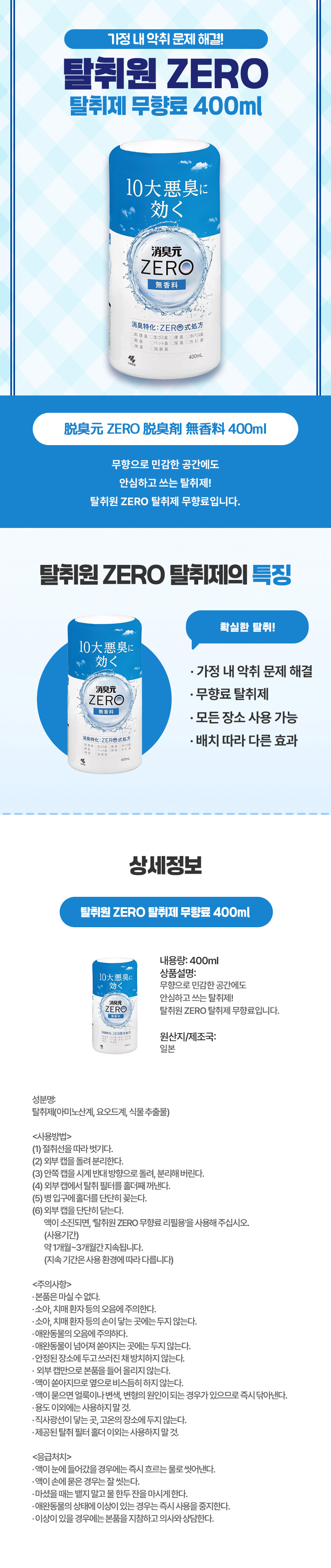 깔끔한 공간엔, 일본 직구 탈취원 ZERO 무향 탈취제
