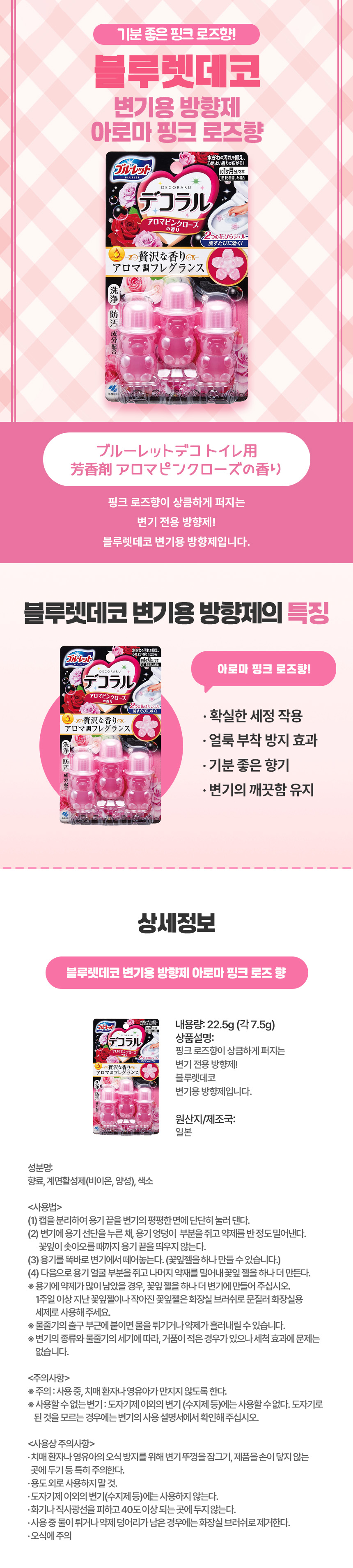 은은하게 퍼지는 장미향, 일본 직구 블루렛데코 변기용 방향제 아로마 핑크 로즈