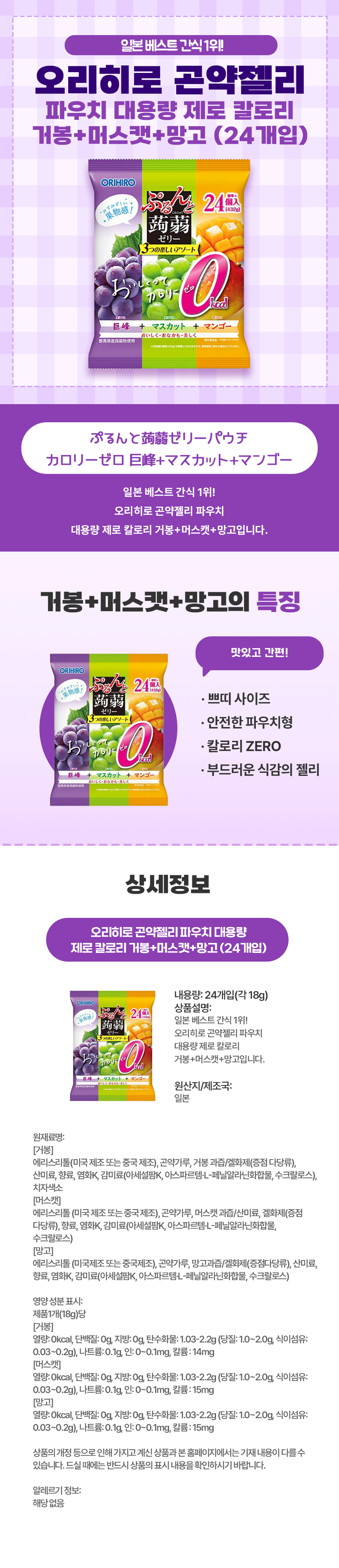 오리히로 곤약젤리 파우치 대용량 제로 칼로리 거봉+머스캣+망고 (24개입)