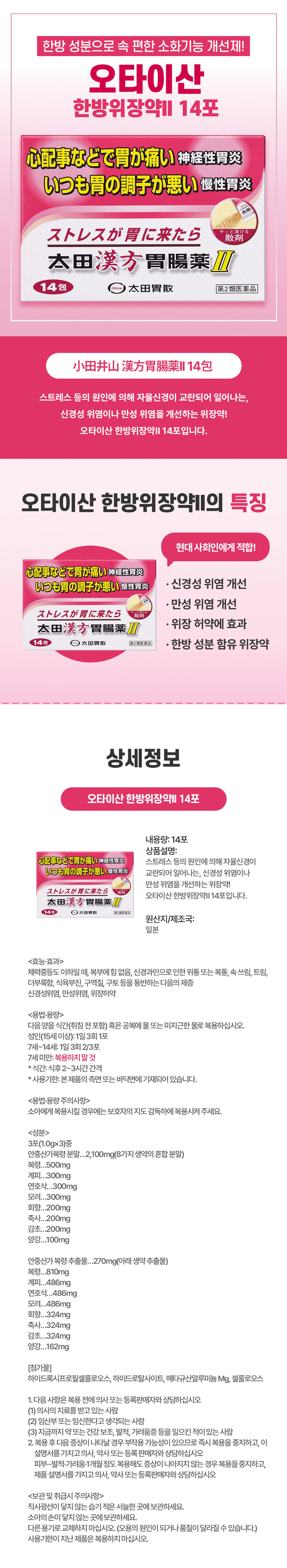 속 편한 한방 위장약이 필요할 때, 일본 직구 오타이산 위장약Ⅱ 14포