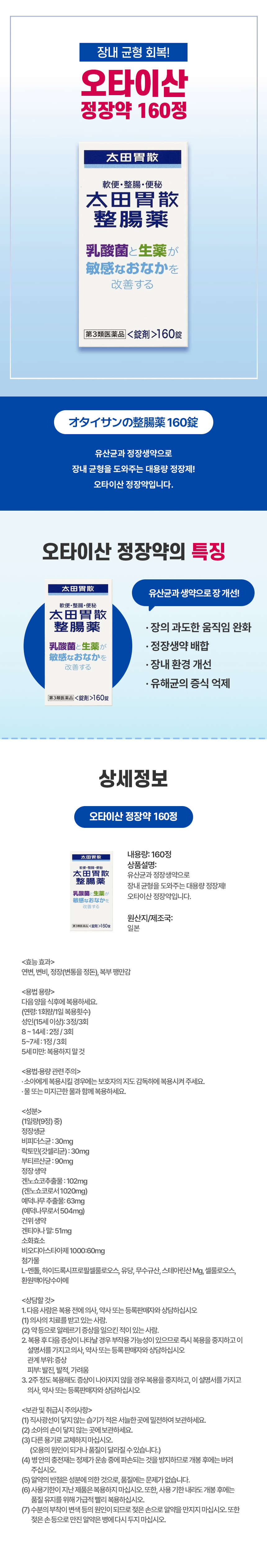 장 트러블 케어가 필요할 때, 일본 직구 오타이산 정장약 160정