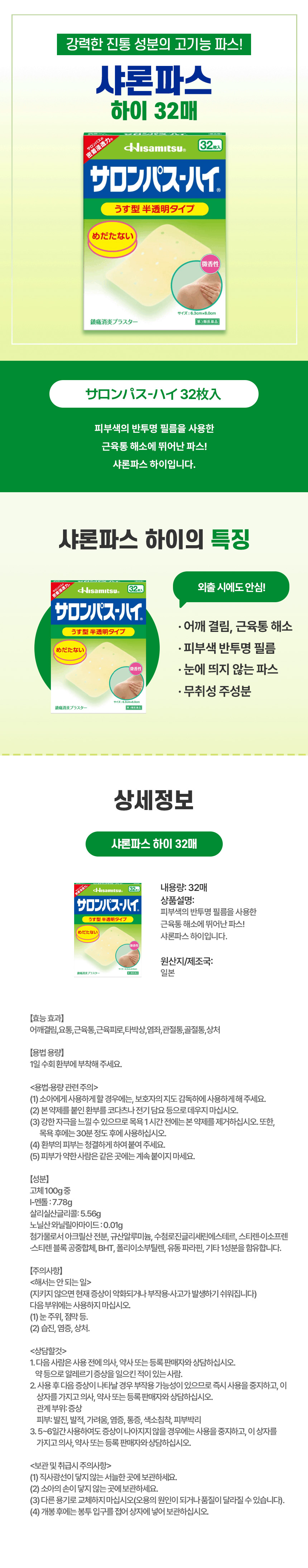 근육통·어깨결림 강력 케어엔, 일본 직구 샤론파스 하이