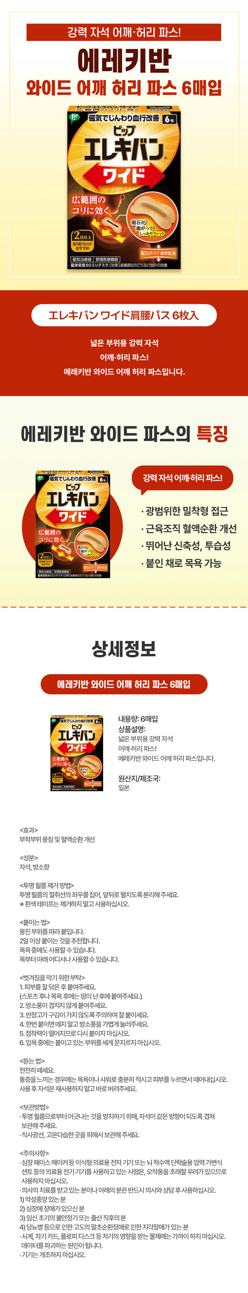 허리·어깨 통증엔, 일본 직구 에레키반 와이드 파스