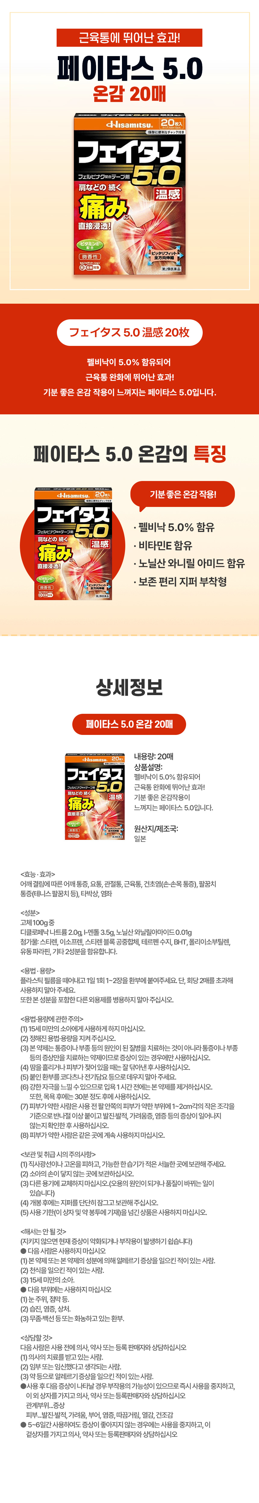 근육통·관절통 따뜻하게, 일본 직구 페이타스 5.0 온감