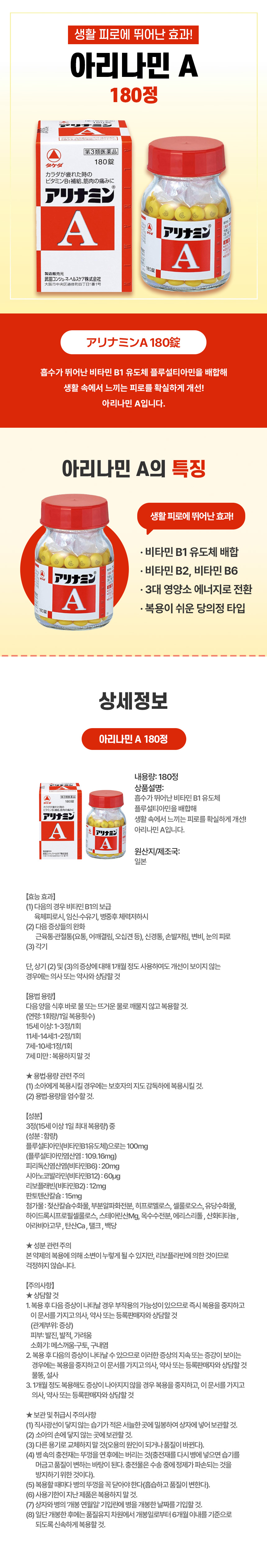 집중력과 체력 보강에 도움, 일본 직구 아리나민 A