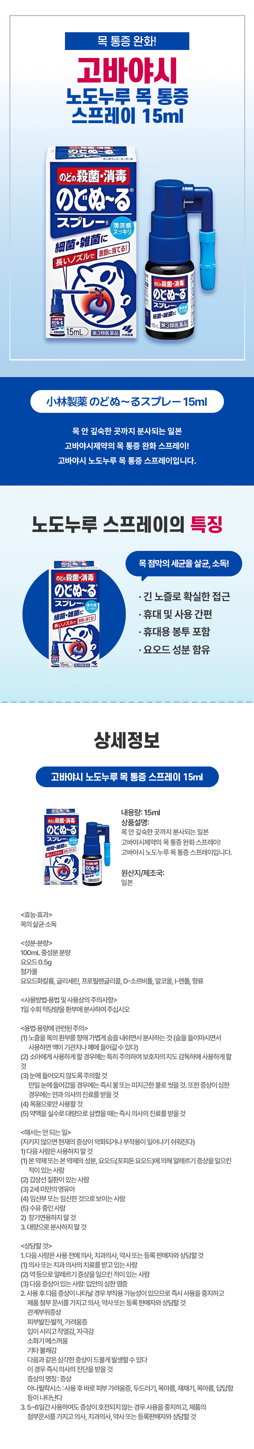 따끔한 목통증엔 한 번에 분사! 고바야시 노도누루 스프레이로 빠른 진정