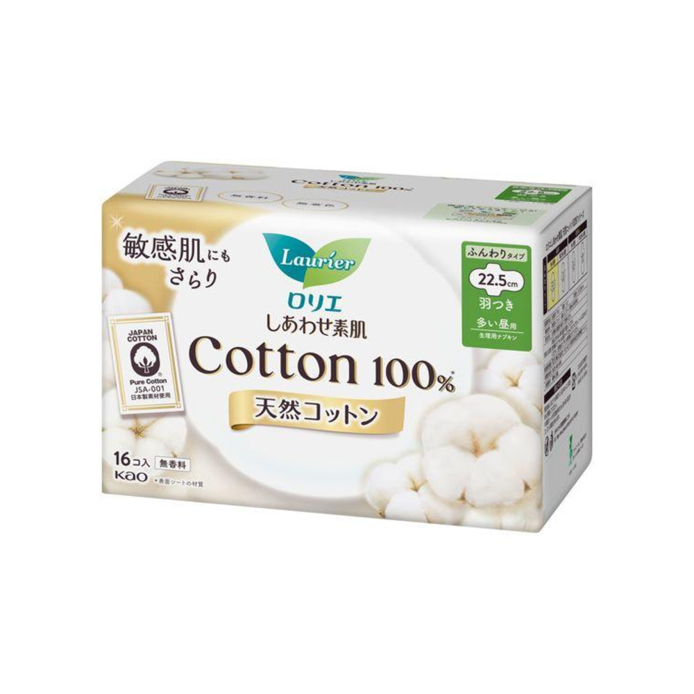 로리에 코튼 100% 무향료 날개형 22.5cm 생리대 16개입