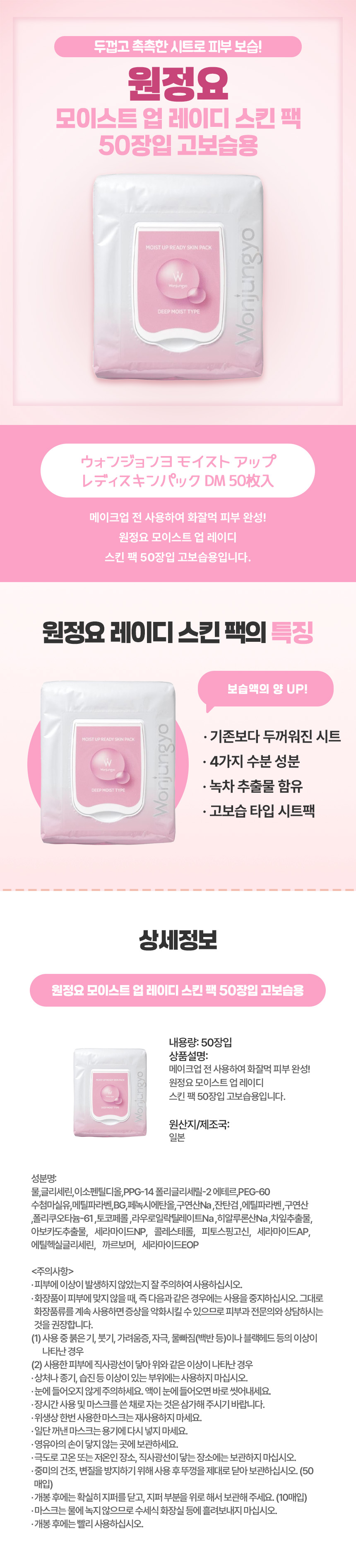 건조한 피부에 촉촉한 생기를 더하는 고보습 스킨팩, 일본 직구 원정요 모이스트 업 레이디 스킨팩